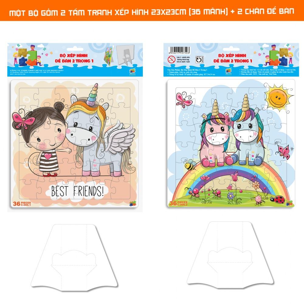 ✨Bộ 2 Tranh Xếp Hình 36 Mảnh Để Bàn 23 x 23 cm - Minh Châu C2-006