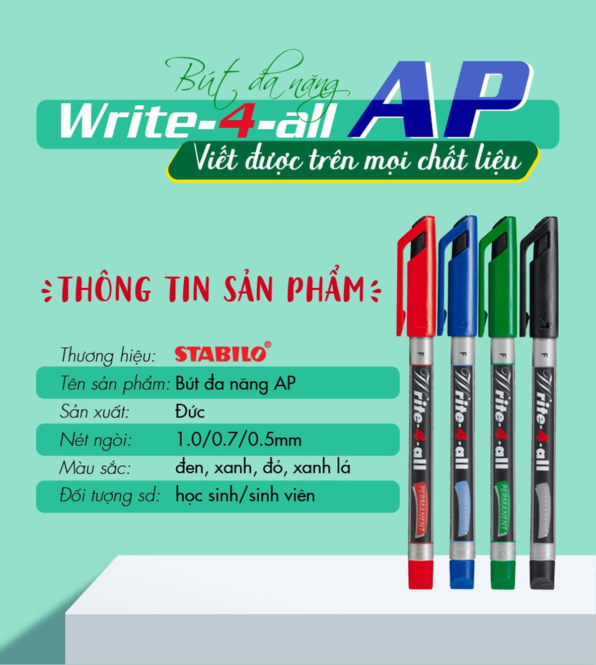 - Viết được trên mọi bề mặt trơn, tạo cảm giác thoải mái khi viết