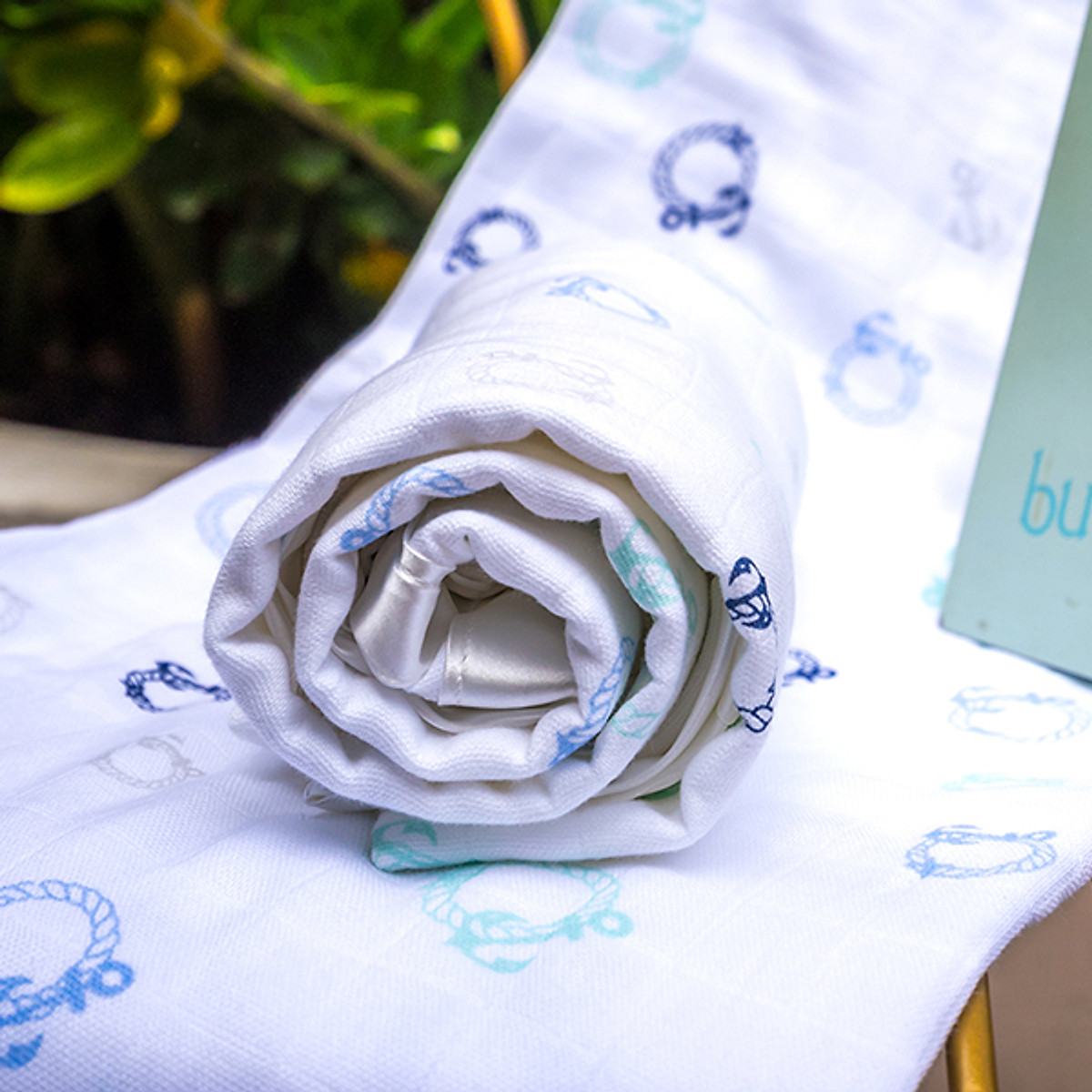 Họa tiết bông hoa được đính trên nền vải gấm khổ lớn ba lớp. Gạc ba mềm và nhẹ sử dụng sợi hữu cơ nhẹ nhàng quấn bé. Ngoài khả năng thoáng khí và hút nước
