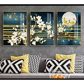 Tranh in trên vải canvas hội họa Kích thước: 40x60cm x3 Tấm lưng bằng gỗ MDF nhập khẩu. Khung vật liệu composite. Không bị ảnh hưởng bởi nước, ẩm mốc. Tặng kèm đinh 3 chân
