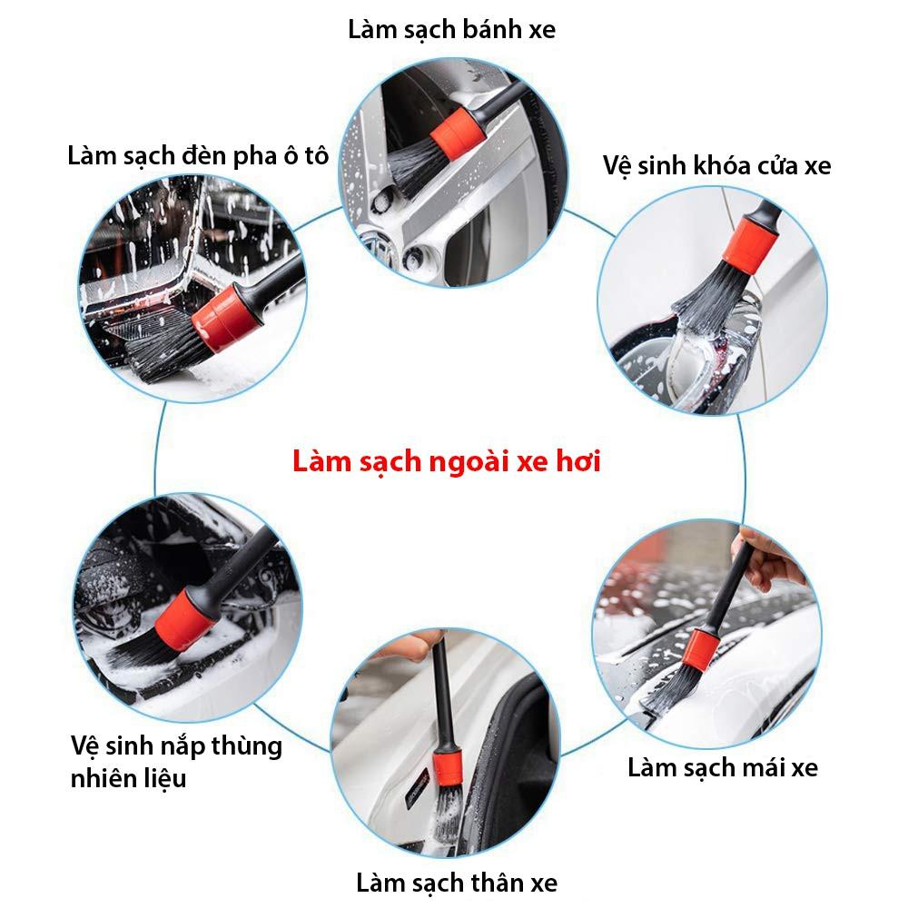- Bộ 5 cọ tròn rửa xe chi tiết loại bỏ bụi, vụn bánh mì và các vật dụng nhỏ khác ra khỏi bánh xe, lỗ thông hơi, trang trí, kẽ hở chỗ ngồi và biểu tượng, làm cho chiếc xe thân yêu của bạn gọn gàng và làm sạch từ trong ra ngoài. Cũng tuyệt vời để làm sạch bàn phím máy tính hoặc máy tính xách tay, lỗ thông hơi sưởi ấm trung tâm, cửa trượt và vô số công dụng khác xung quanh nhà. ️ Mô tả sản phẩm: