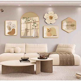 ✨Bộ 5 tranh tráng gương kết hợp đồng hồ phong cách tối giản thích hợp trang trí phòng khách