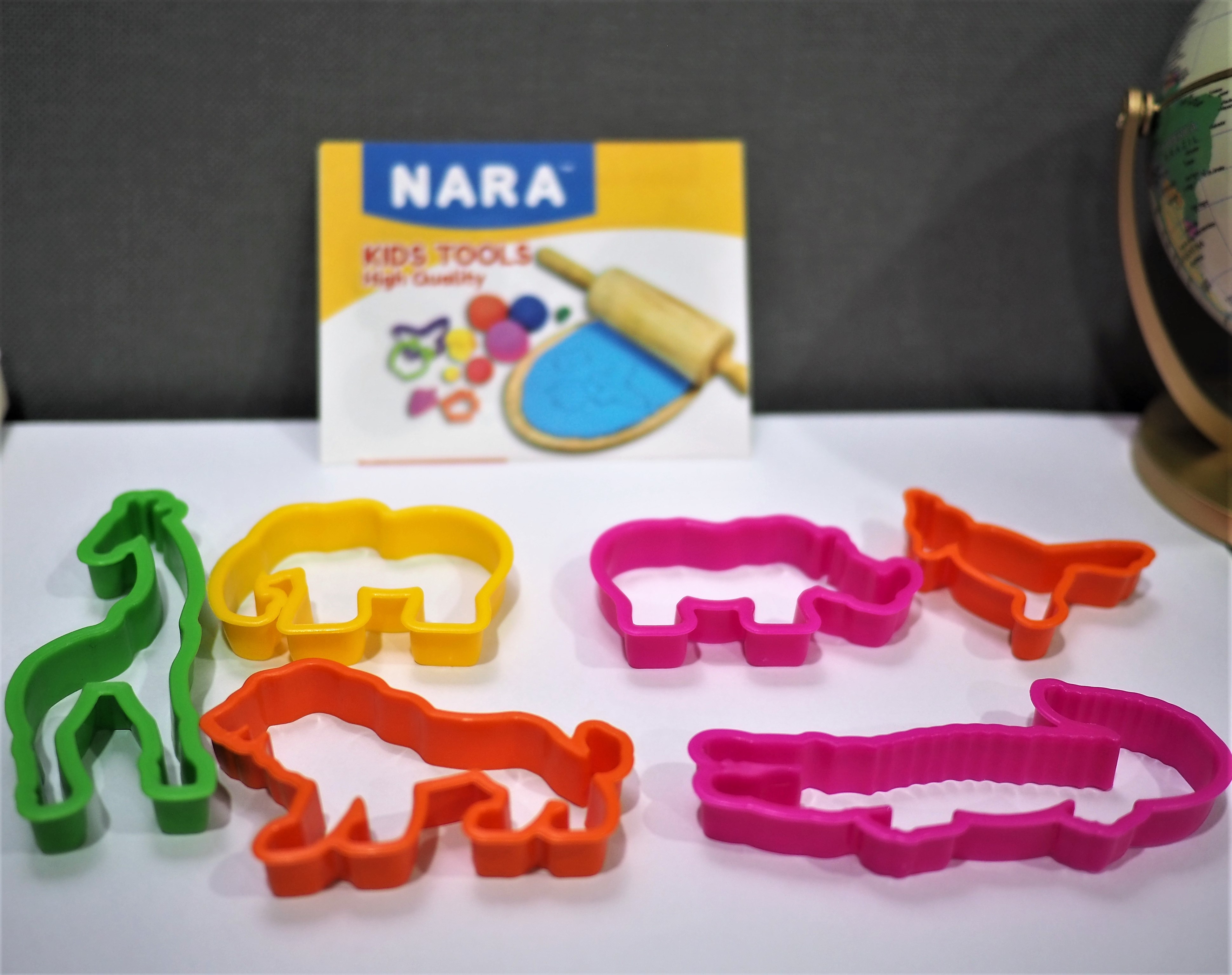 Để sử dụng, chỉ cần cán bằng cây lăn tới đồ dày mong muốn. Rồi đặt khuôn lên, ấn mạnh xuống, rồi lấy ra. Ta có được hình dạng đơn giản của con vật bằng bột nặn.