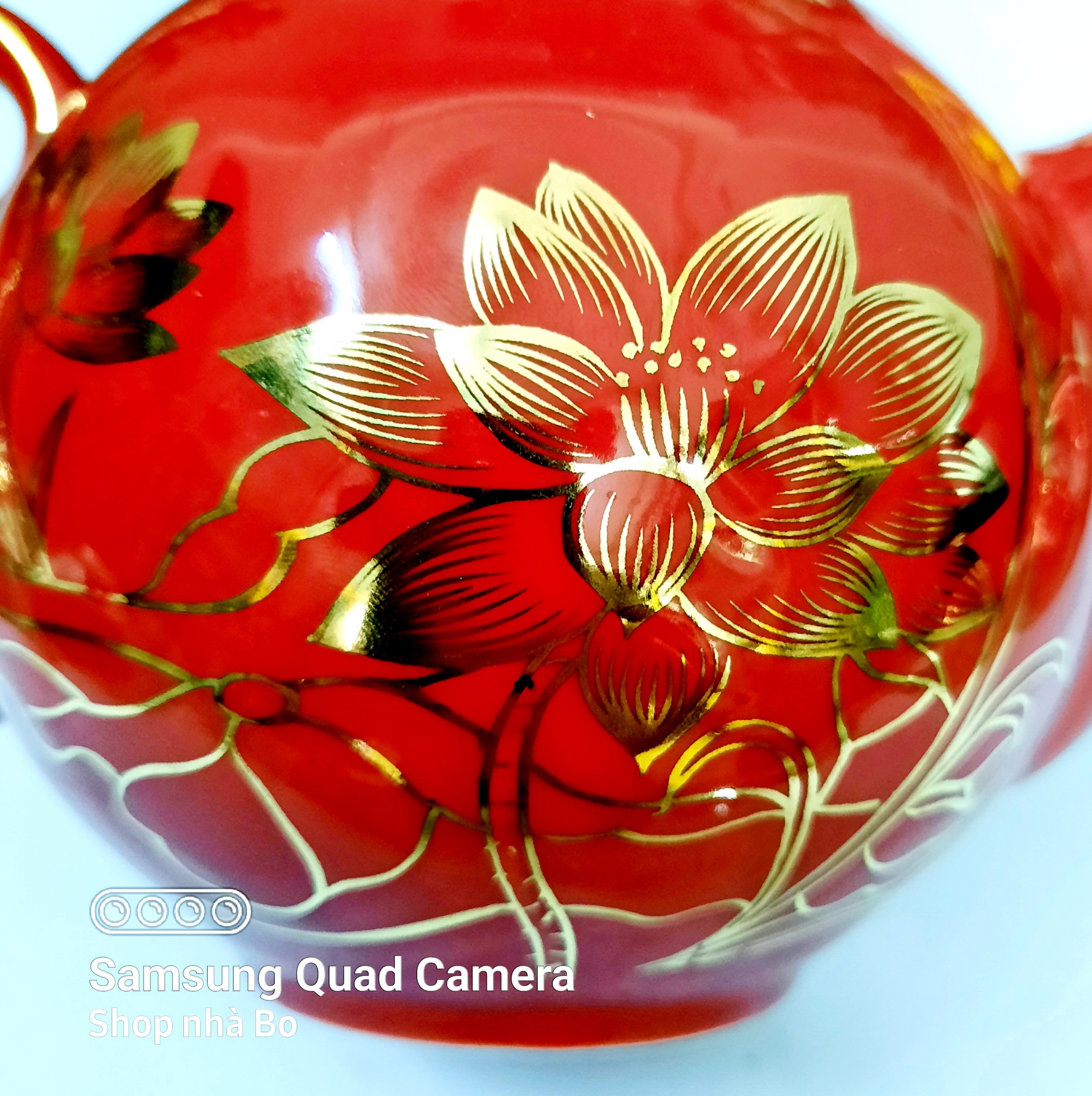 ✨Bộ ấm chén Bát Tràng cao cấp mẫu đơn đỏ vẽ sen vàng