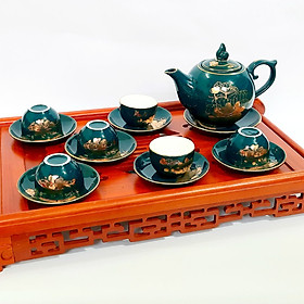 Bộ ấm chén Bát Tràng cao cấp màu xanh Arctic họa tiết hoa sen vẽ vàng 24k Là sản phẩm hội tụ được nét tinh xảo của bàn tay Nghệ nhân Bát Tràng. Bên