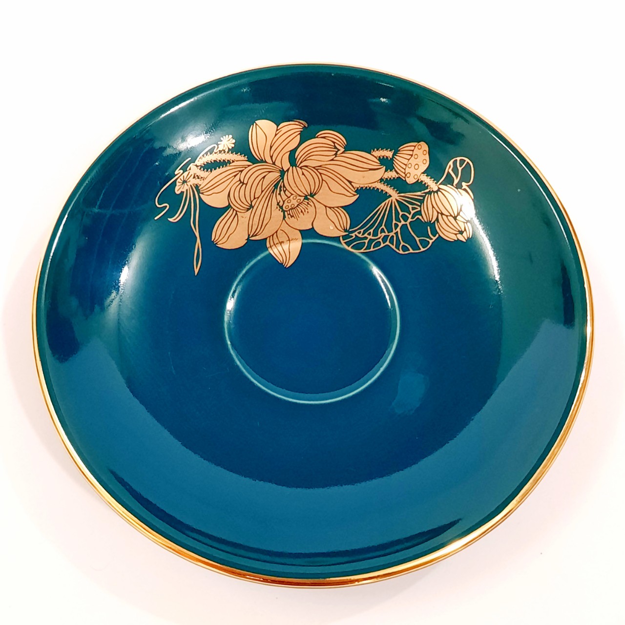 ✨Bộ ấm chén Bát Tràng cao cấp màu xanh Arctic họa tiết hoa sen vẽ vàng 24k