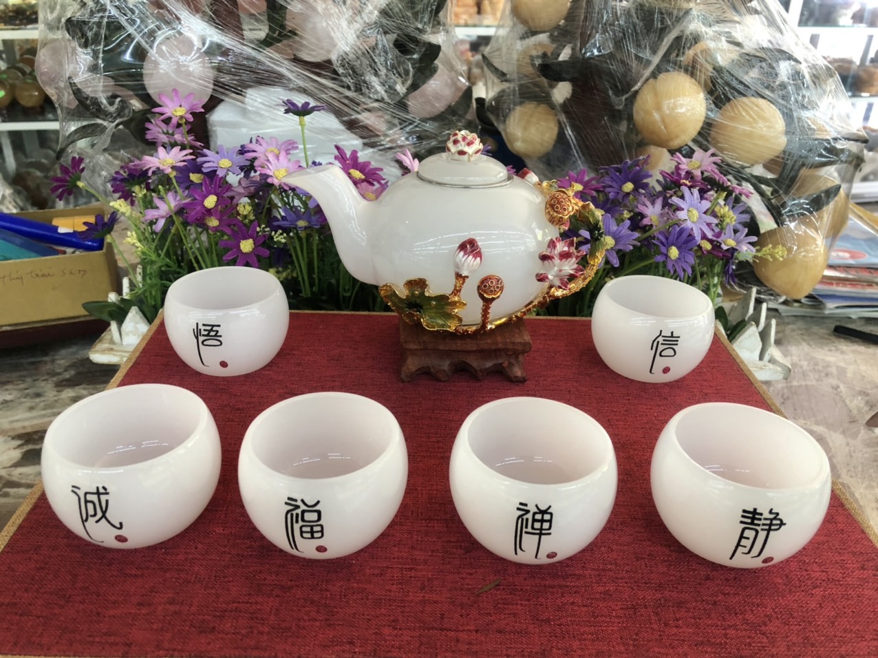 ✨Bộ ấm trà chạm bông hoa sen