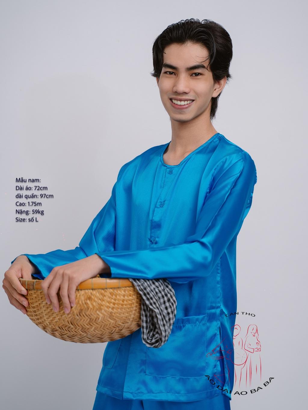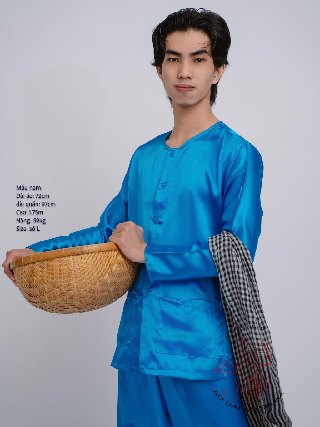Màu sắc : xanh dương (chưa bao gồm khăn) Cửa hàng xin giới thiệu đến quý khách hàng thêm thông tin về bộ Áo Bà Ba truyền thống miền Tây.