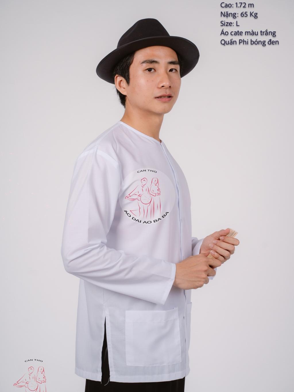 ✨Bộ áo bà ba nam phối áo cate trắng + Quần cate đen - Có bộ bà ba Bigsize
