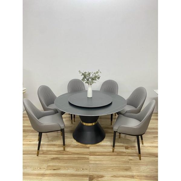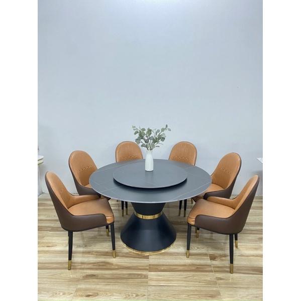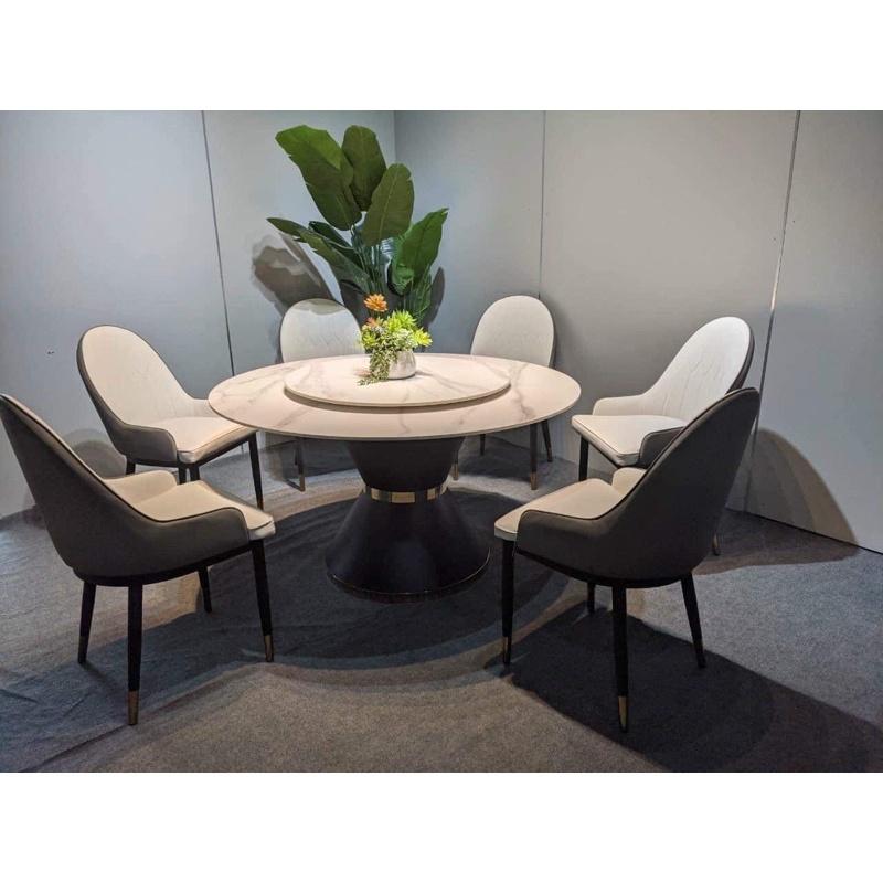 Bộ bàn ăn tròn xoay 2 mặt đá phiến Ceramic kèm ghế monet - noithatgiakho.com