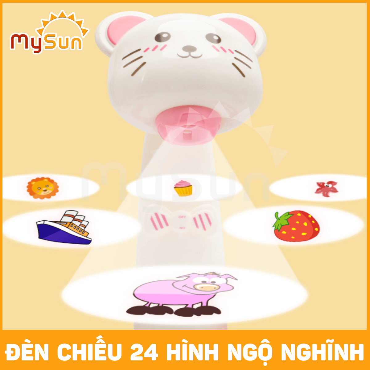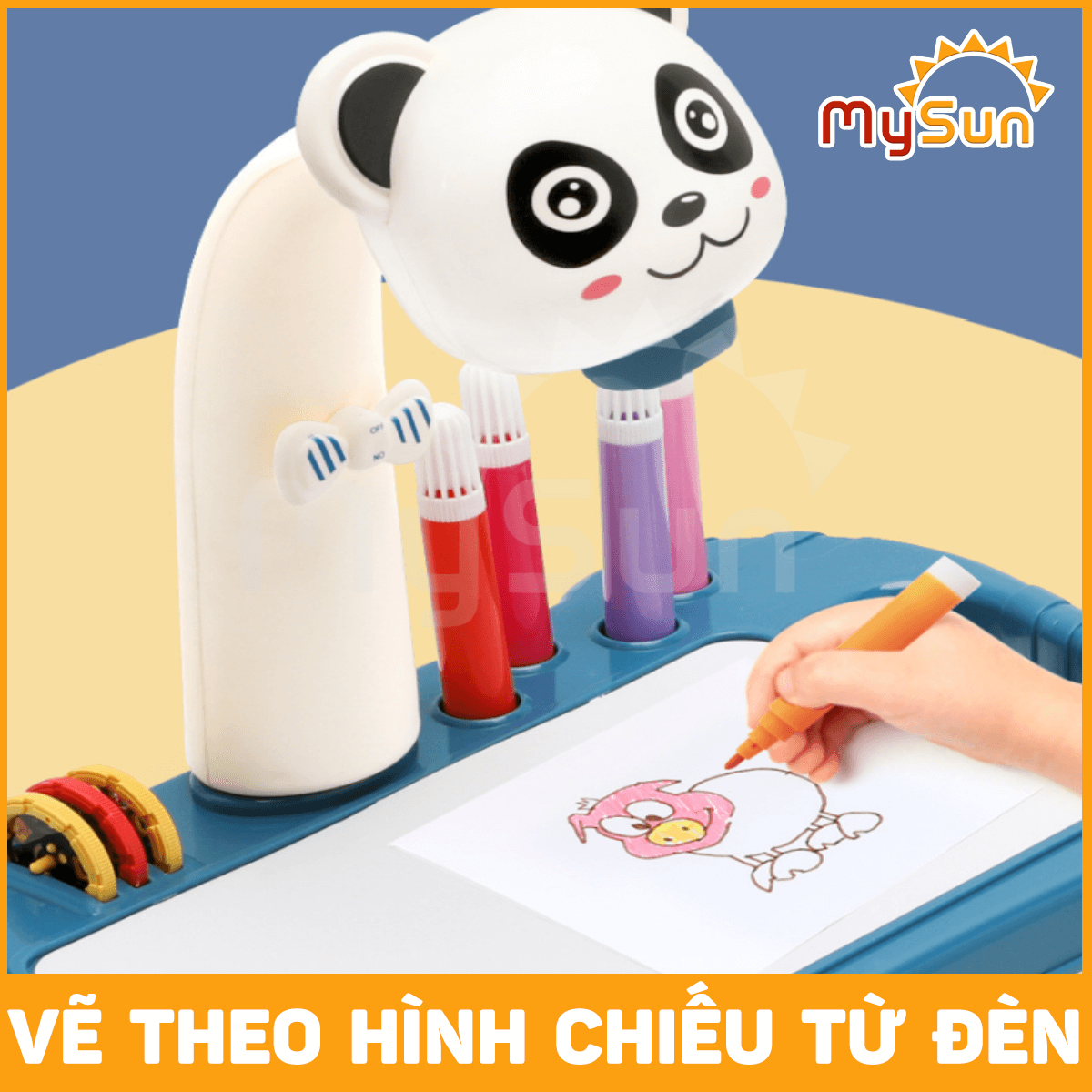 - Gồm có: 3 pin AAA (MySun tặng khách), 12 bút màu, 3 đĩa chiếu (8 hình ảnh / đĩa chiếu).