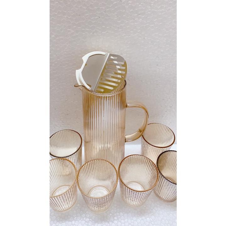 ✨BỘ BÌNH ĐỰNG NƯỚC UỐNG THỦY TINH KÈM 6 CỐC MÀU VÀNG GOLD VÂN TĂM SANG TRỌNG