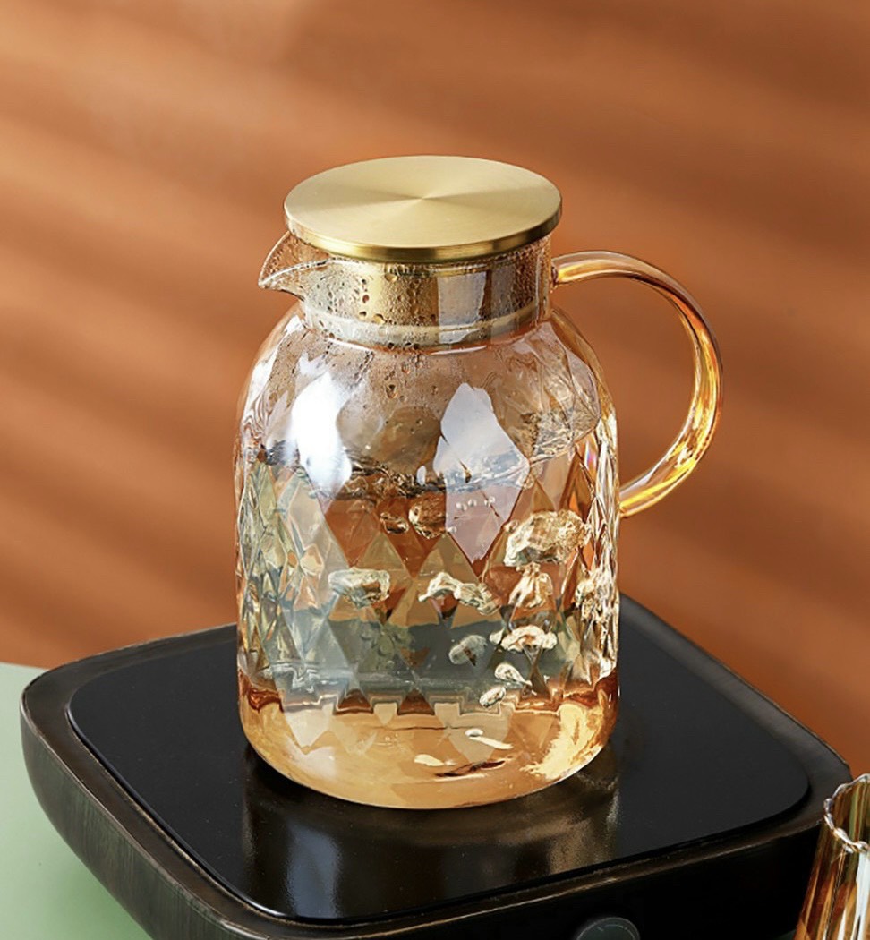 Bộ bình nước thủy tinh chịu nhiệt cao, có thể chịu nhiệt lên đến 400 độ, có tính thẩm mỹ cao và tiện ích cho người nội trợ. Sản phẩm nổi bật bởi thiết kế