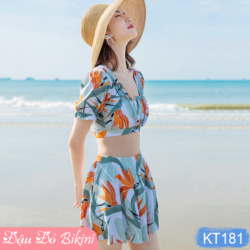 ✨Bộ bơi 2 mảnh nữ thời trang, áo croptop vai bèo & quần váy điệu xinh, lưng trần cách điệu sexy, thun bơi co giãn cao, thoải mái dễ chịu khi mặc | KT181