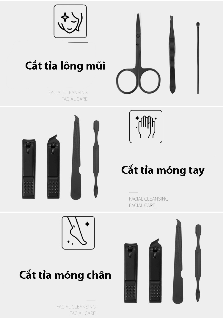 Mua tại TiktokBao gồm 07 dụng cụ chuyên nghiệp dùng để chăm sóc móng, da, lông.