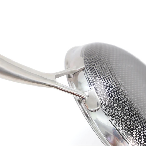 • Tay cầm bằng Inox đúc rỗng, kỹ thuật đặc biệt ghép nối với thành chảo nên không nóng