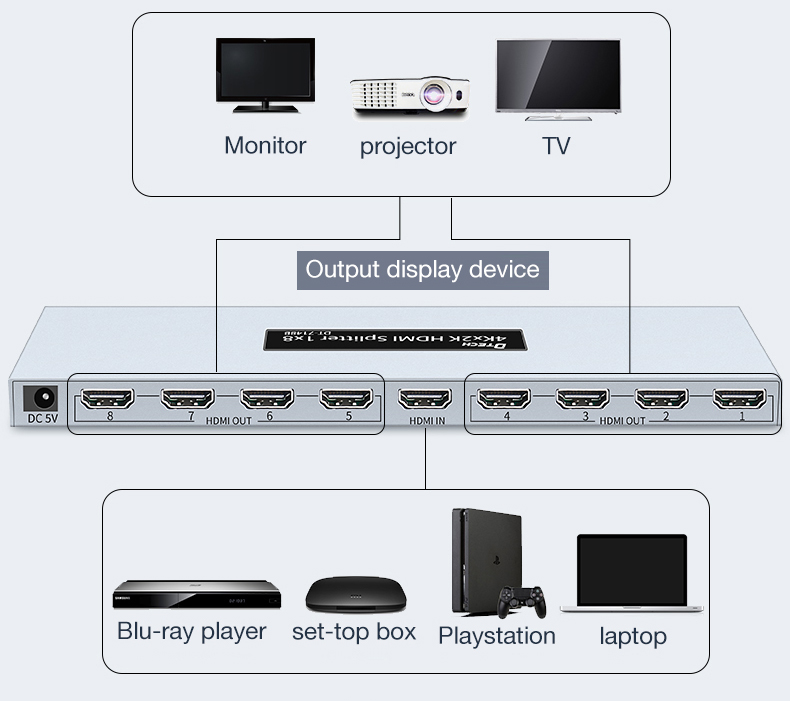 - Các tính năng : 1 cổng tín hệu đầu vào được chia thành 8 cổng ra HDMI