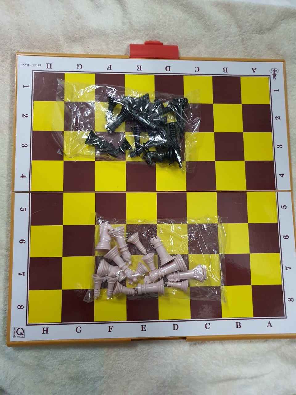 - Bàn cờ làm bằng nhựa và có thể gấp gọn. Các ô trên bàn cờ được in màu nổi bật, rõ ràng và không bị lem.