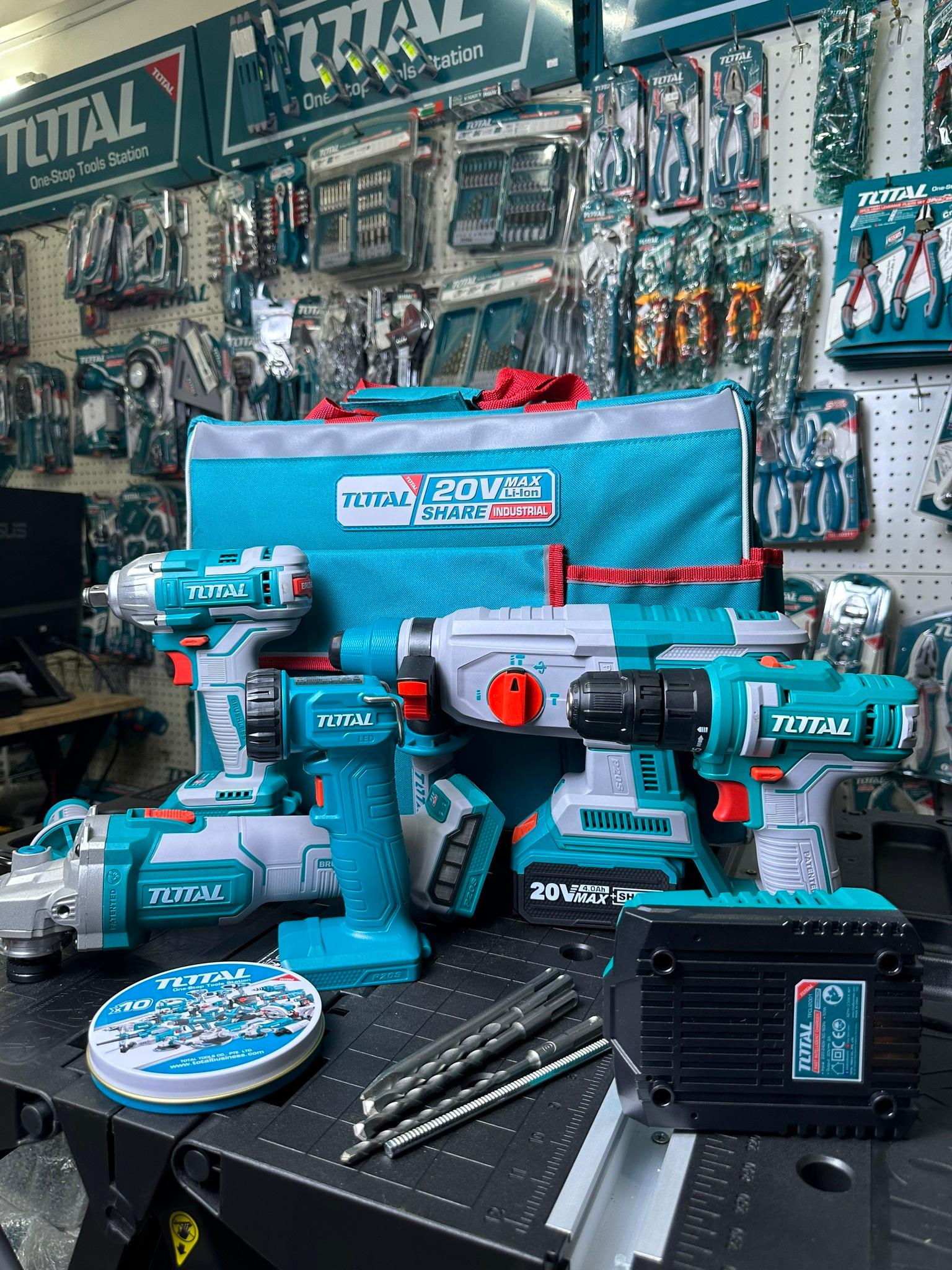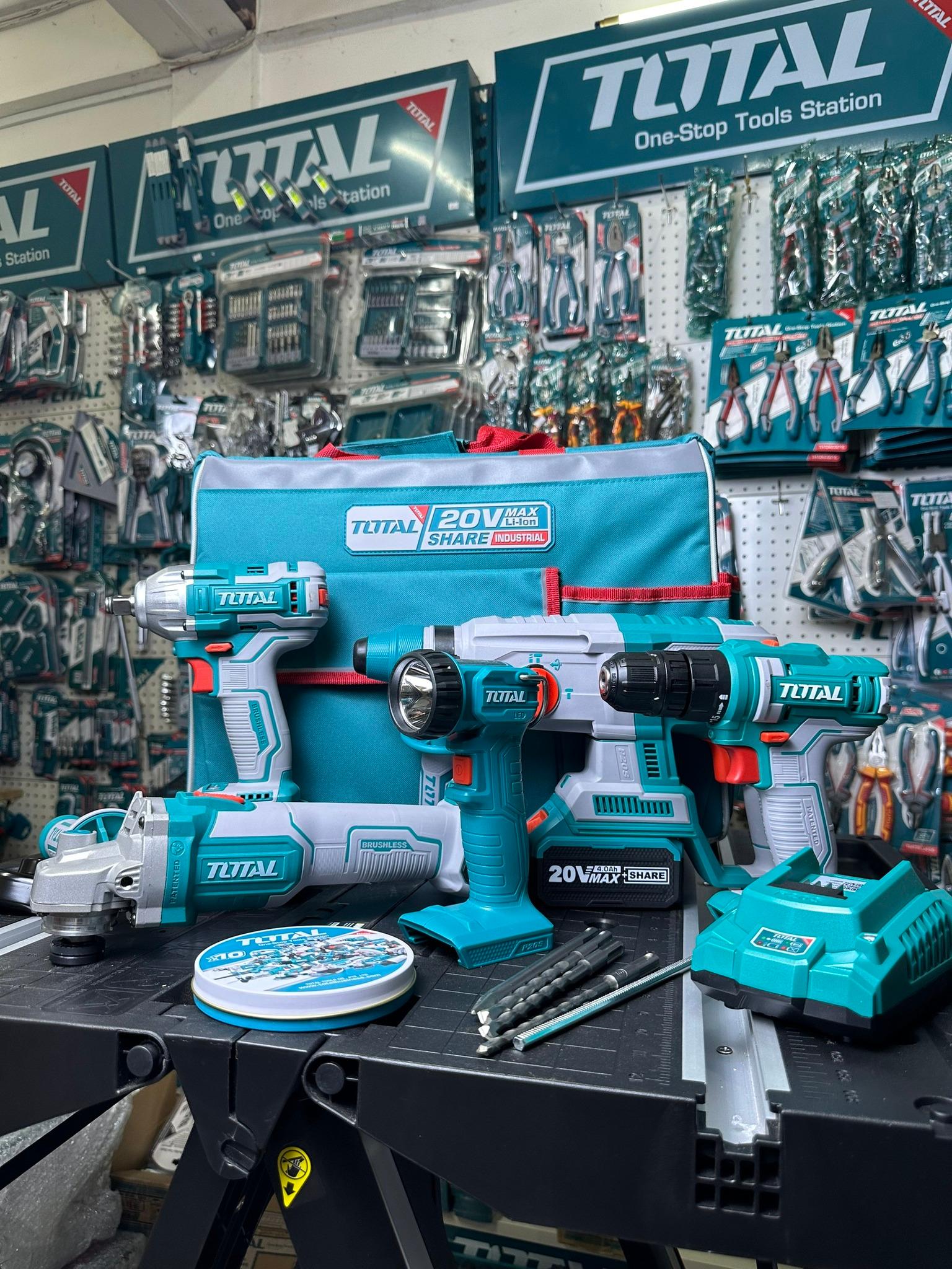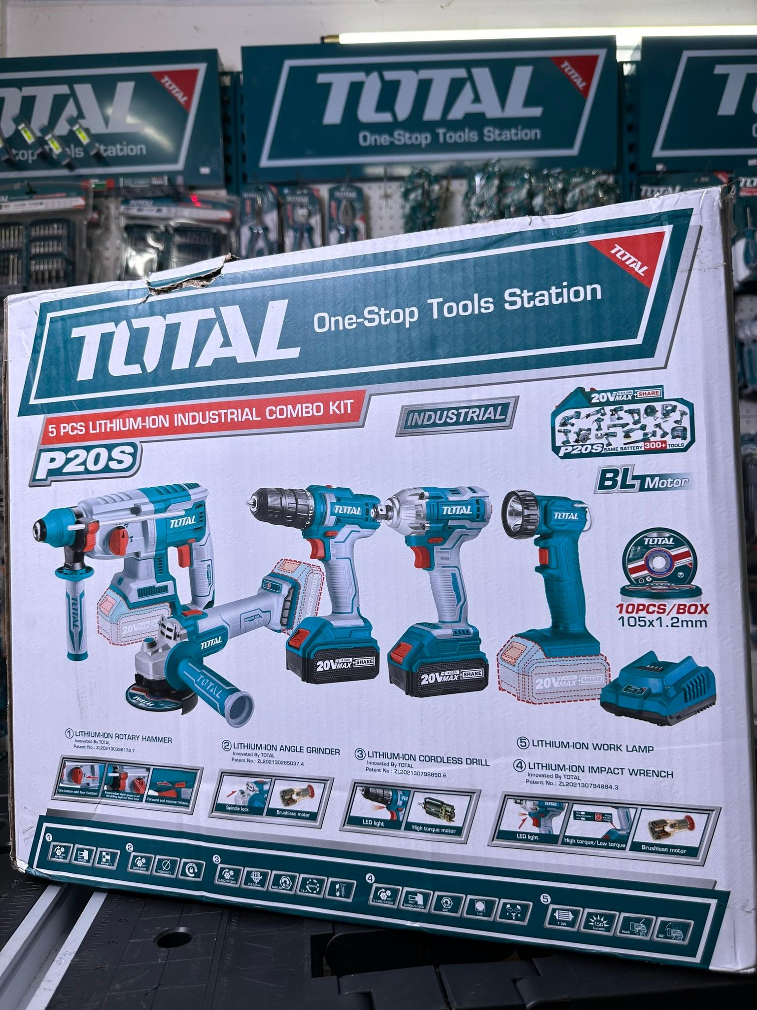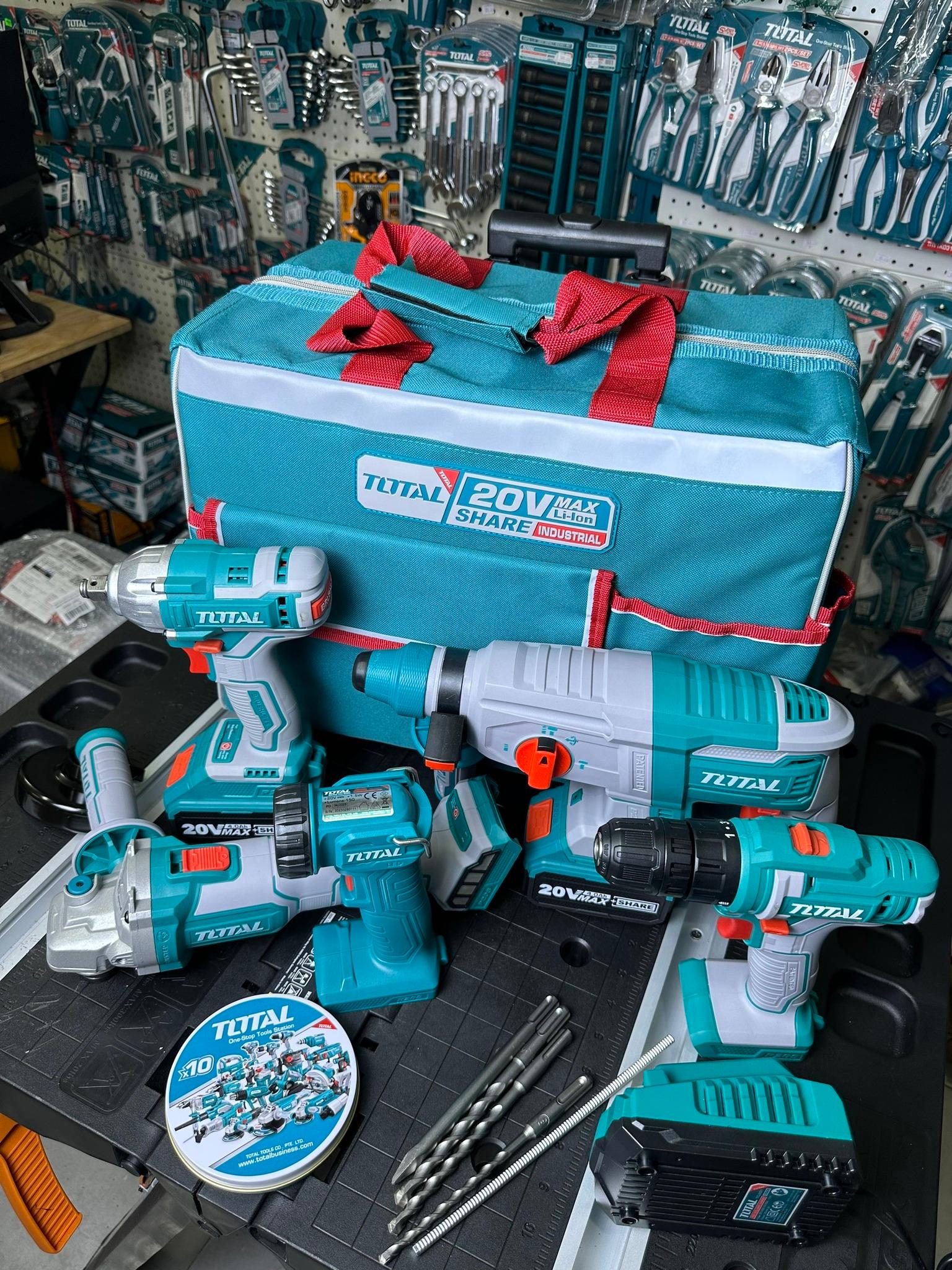 Mua tại TiktokBộ combo 5 máy dùng pin 20V ngành xây dựng gồm siết vit TIWLI2038, khoan TDLI20051, mài góc TAGLI20107, đèn TWLI2023 và khoan động lực TRHLI20228 TOTAL - TCKLI2018 Tổng quan sản phẩm