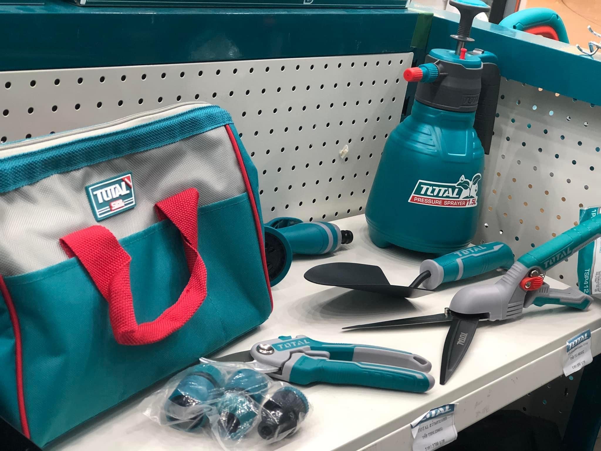 Thương hiệu đồ nghề và máy móc Total ngày càng khẳng định vị thế của mình trên thị trường, cạnh tranh thị phần với những nhãn hiệu có danh tiếng xưa giờ luôn. Total sẽ chứng minh hàng rẻ nhưng có chất lượng tốt là có thật! Total tools - Không cần bỏ số tiền lớn nhưng vẫn có cho mình những đồ nghề chất lượng. Từ những món đồ nghề đơn giản như búa, tuốc nơ vít, lục giác, cờ lê mỏ lết… được sử dụng nhiều trong gia đình cho đến những máy móc dùng điện và pin Lithium-Ion như máy khoan, máy đục bê tông, máy cưa lọng, máy cắt sắt, máy mài góc… công suất mạnh, hay được sử dụng trong nhiều ngàng công nghiệp nặng. Tất cả sản phẩm do Total sản xuất đếu khá là chất lượng và có mức giá rẻ, không như các ông lớn khác là Makita, Stanley… sản phẩm tuy tốt nhưng có giá thánh khá là đắt! Bạn thắc mắc vì sao mà công cụ - dụng cụ Total có giá rẻ ư?! Vì họ không tốn bất cứ tiền quảng cáo, quảng bá thương hiệu nào cả, từ đó mà giá thành sản phẩm rẻ! Thông số kĩ thuật -Mã sản phẩm: TOS23048 -Nhà sản xuất: Total -Bộ combo 7 công cụ làm vườn gồm: -1 Kéo cắt tỉa 220mm THT0601 -1 xẻng xúc đất làm vườn 340mm THFTT858 -1 Kéo cắt cỏ 340mm THTGS60340 -1 Bình phun 1.5L THSPP201502 -1 Vòi phun THZATN1101. 1 Bộ 3 khớp nối THWS030301 -1 Túi đựng công cụ 13 inch THT261325