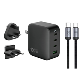 Mua tại TiktokBộ sạc 4 cổng 100W QC&PD GAN Đầu vào: 100V-240V ~50/60Hz 2.5A MAX Đầu ra: USB-C1 hoặc USB-C2: 5V/3A 9V/3A 12V/3A 15V/3A 20V/5A (TỐI ĐA 100W) PPS:3,3-11V/4A khi 45-100W/ PPS:3,3-11V/3A khi 30W USB-C3: 5V/3A 9V/2.22A 12V/1.67A (Tối đa 20W) PPS: 3,3-5,9V/3A;3,3-11V/2A USB-A: 5V/3A 9V/2A 12V/1.5A (TỐI ĐA 18W) USB-C1+USB-C2: 45W+45W(Tối đa 90W) USB-C1hoặc USB-C2+USB-C3: 65W+20W(TỐI ĐA 85W) USB-C1hoặc USB-C2+USB-A: 65W+18W(TỐI ĐA 83W) USB-C3+USB-A: 5V/4A(TỐI ĐA 20W) USB-C1+USB-C2+USB-C3: 45W+30W+20W(Tối đa 95W) USB-C1+USB-C2+USB-A: 45W+30W+18W(Tối đa 93W) USB-C1+USB-C2+USB-C3+USB-A: 45W+30W+20W(TỐI ĐA 95W) Tổng công suất: 100W Kích thước: L=65.1W=65.1H=37mm (không bao gồm phích cắm) Cáp: C-C 100W bện, truyền dữ liệu 480Mbps, 1 mét