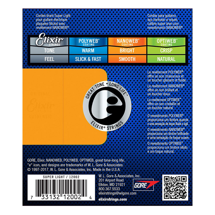 Mua tại Tiktok- Bộ Dây Đàn Guitar Electric Elixir 12002 được làm bằng dây thép bọc niken, phủ Nanoweb rất mỏng khiến người chơi thấy giống như đang chơi dây thông thường, tạo sự thoải mái khi sử dụng.