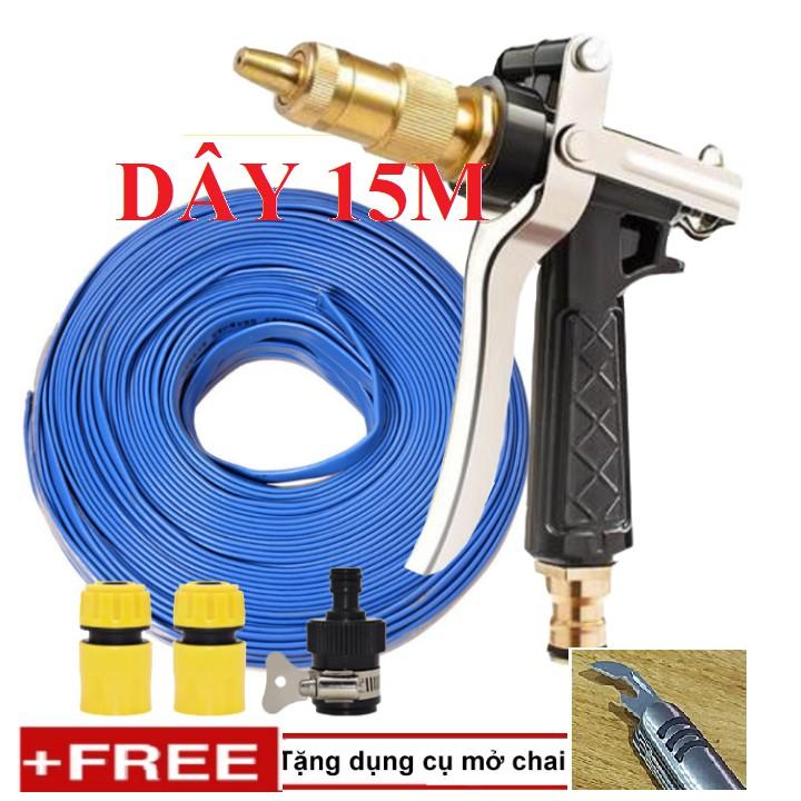 ✨Bộ dây vòi xịt nước rửa xe, tưới cây . tăng áp 3 lần, loại 15m 206236 đầu đồng,cút+ tặng mở chai