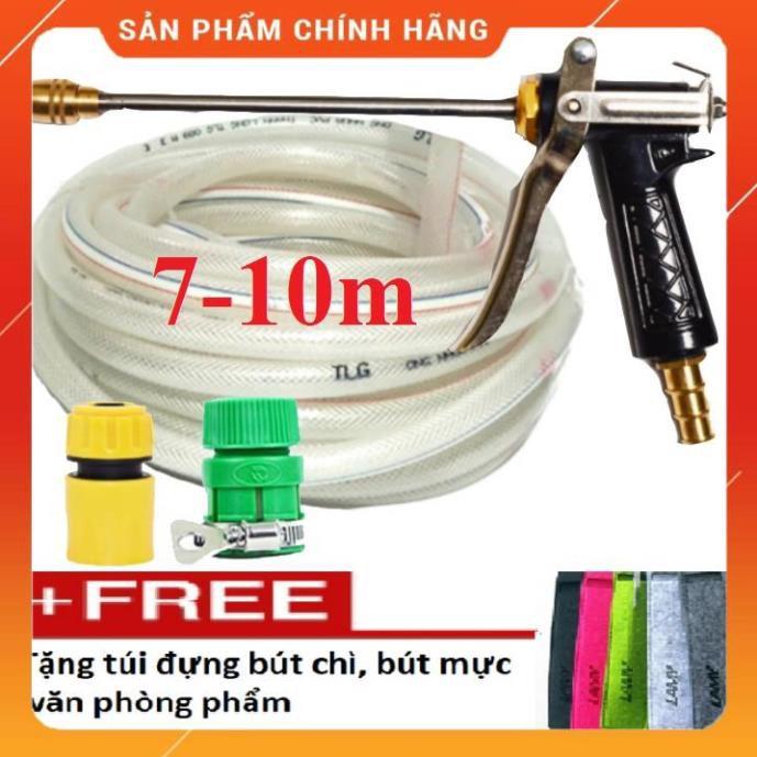 ✨Bộ dây vòi xịt nước ️ , tăng áp 3 lần, loại 7m,10m 206318 đầu đồng,cút,nối vàng+ túi đựng bút
