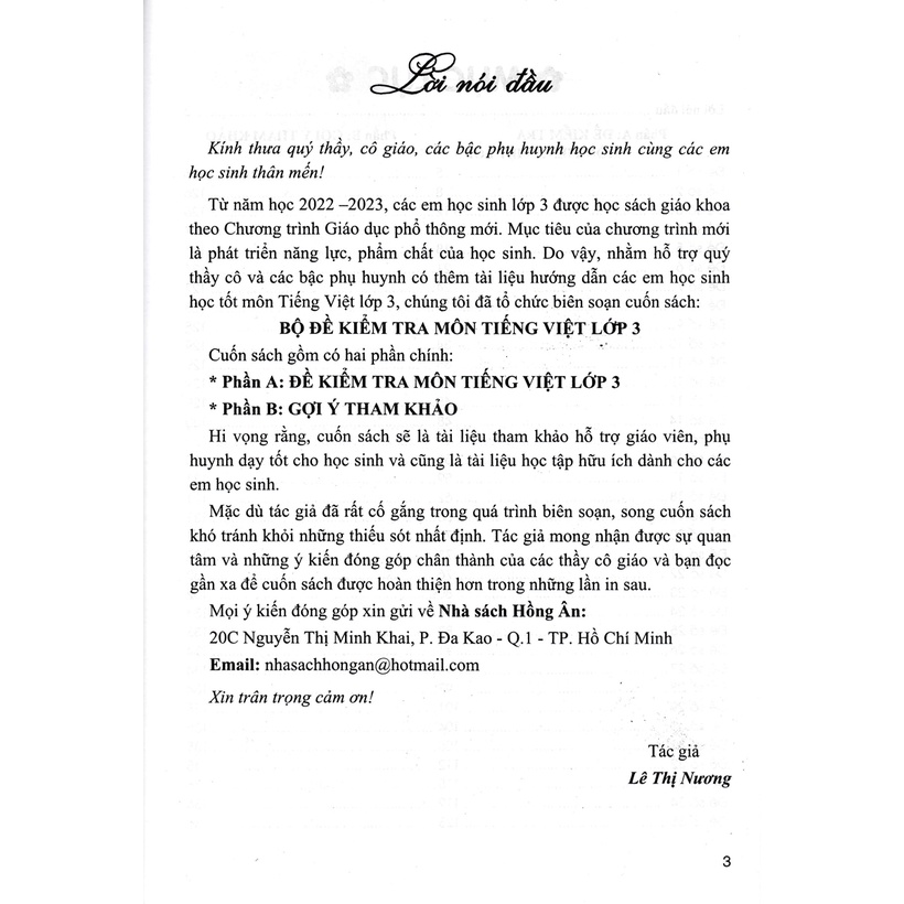 Sách Đề Kiểm Tra Tiếng Việt 3 với nhiều hình ảnh trẻ thơ giúp sách gần gũi với các con học sinh hơn. Với nội dung hay, đa dạng bài tập và bám sát chương trình sách giáo khoa hiện hành, phụ huynh có thể hiểu rõ hơn chương trình các con đang theo học. Sách được biên soạn gồm đề kiểm tra giữa kì và đề kiểm tra cuối kì theo chuẩn phân phối chương trình học kì lớp 3. Đề thi bám sát theo bố cục đề thi trên lớp cô giáo đưa ra. Mỗi đề đều gồm phần đọc tiếng, đọc hiểu và khoanh đáp án (trắc nghiệm), phần sau sẽ là bài tập áp dụng gồm nhiều hình ảnh bắt mắt. Mỗi đề là một màu sắc và dạng bài tập khác nhau. Gần kì thi giữa kì và cuối kì quý phụ huynh cho con làm bài tập để ôn tập lại kiến thức trong cả kì học vừa qua và giúp con không đam mê các trò chơi không tốt. Phần sau là bài tập cho các con luyện tập. Ở cuối sách phụ huynh có thể xem đáp án chi tiết từng bài.