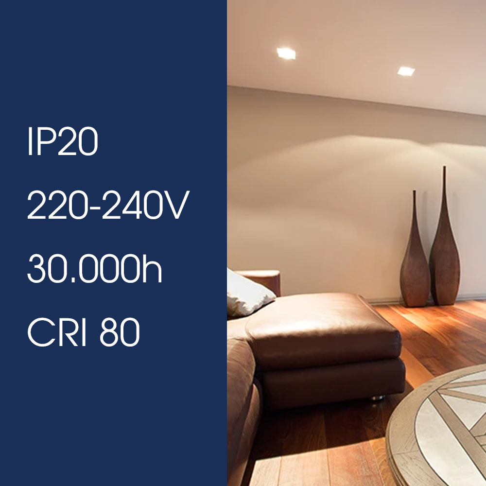 Đường kính khoét lỗ / Công suất: 90/7W. Dải điện áp hoạt động: (150V - 250V)/50Hz Quang thông: 510lm/550lm/470lm Nhiệt độ màu: Sáng trắng 6500K/ trung tính 4000K/ Sáng vàng 3000K -> Tắt bật công