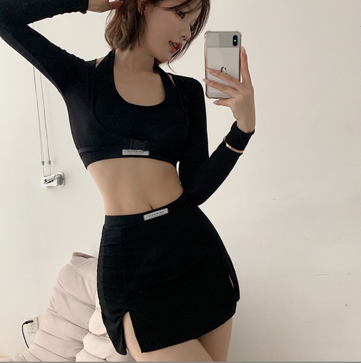 Set Đồ Bơi Nữ Rời Đùi Dài Tay Đi Biển Đi Bơi Chất liệu Polyester 88%, mật độ dệt vừa Áo có sẵn lớp đệm, hông áo có thể rút lên làm croptop cá tính