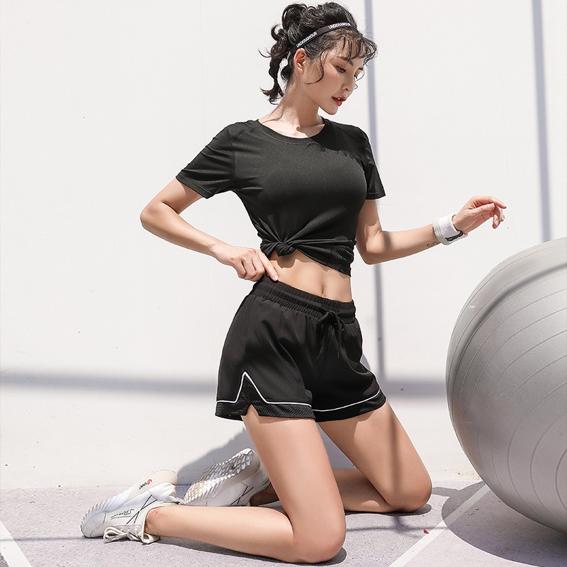 ✨Bộ Đồ Đùi Thể Thao Nữ Gồm Quần Đùi Và Áo Thun Ngắn Tay Màu Đen New