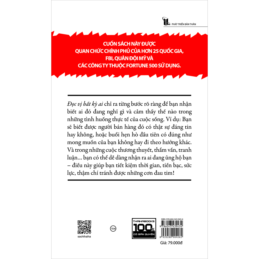 Hãy chiếm thế thượng phong trong việc chủ động nhận biết điều cần tìm kiếm – ở bất kỳ ai bằng cách “thâm nhập vào suy nghĩ” của người khác. Đọc vị bất kỳ ai là cẩm nang dạy bạn cách thâm nhập vào tâm trí của người khác để biết điều người ta đang nghĩ. Cuốn sách này sẽ không giúp bạn rút ra các kết luận chung về một ai đó dựa vào cảm tính hay sự võ đoán. Những nguyên tắc được chia sẻ trong cuốn sách này không đơn thuần là những lý thuyết hay mẹo vặt chỉ đúng trong một số trường hợp hoặc với những đối tượng nhất định. Các kết quả nghiên cứu trong cuốn sách này được đưa ra dựa trên phương pháp S.N.A.P – cách thức phân tích và tìm hiểu tính cách một cách bài bản trong phạm vi cho phép mà không làm mếch lòng đối tượng được phân tích. Phương pháp này dựa trên những phân tích về tâm lý, chứ không chỉ đơn thuần dựa trên ngôn ngữ cử chỉ, trực giác hay võ đoán.