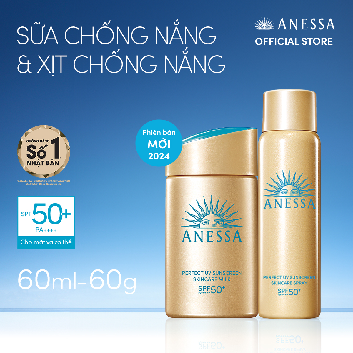 ✨Bộ đôi Kem chống nắng dạng sữa dưỡng da kiềm dầu bảo vệ hoàn hảo + Kem chống nắng dạng xịt dưỡng da bảo vệ hoàn hảo (Anessa Gold Milk 60ml + Gold Spray 60g)