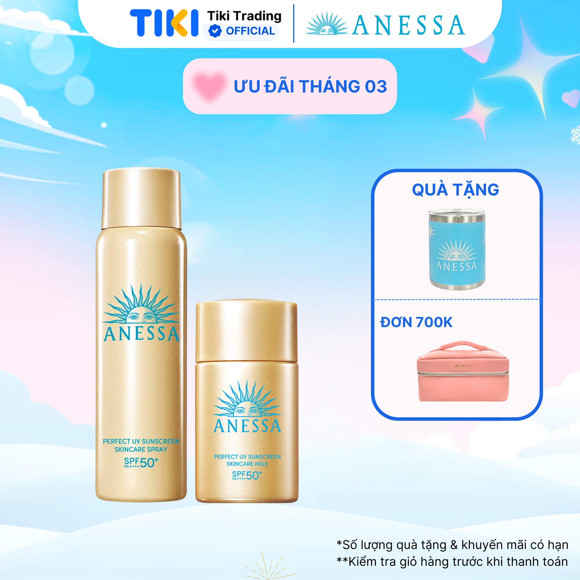 ✨Bộ đôi Kem chống nắng dạng xịt dưỡng da bảo vệ hoàn hảo + Kem chống nắng dạng sữa dưỡng da kiềm dầu bảo vệ hoàn hảo (Anessa Gold Spray 60g + Gold Milk 20ml)