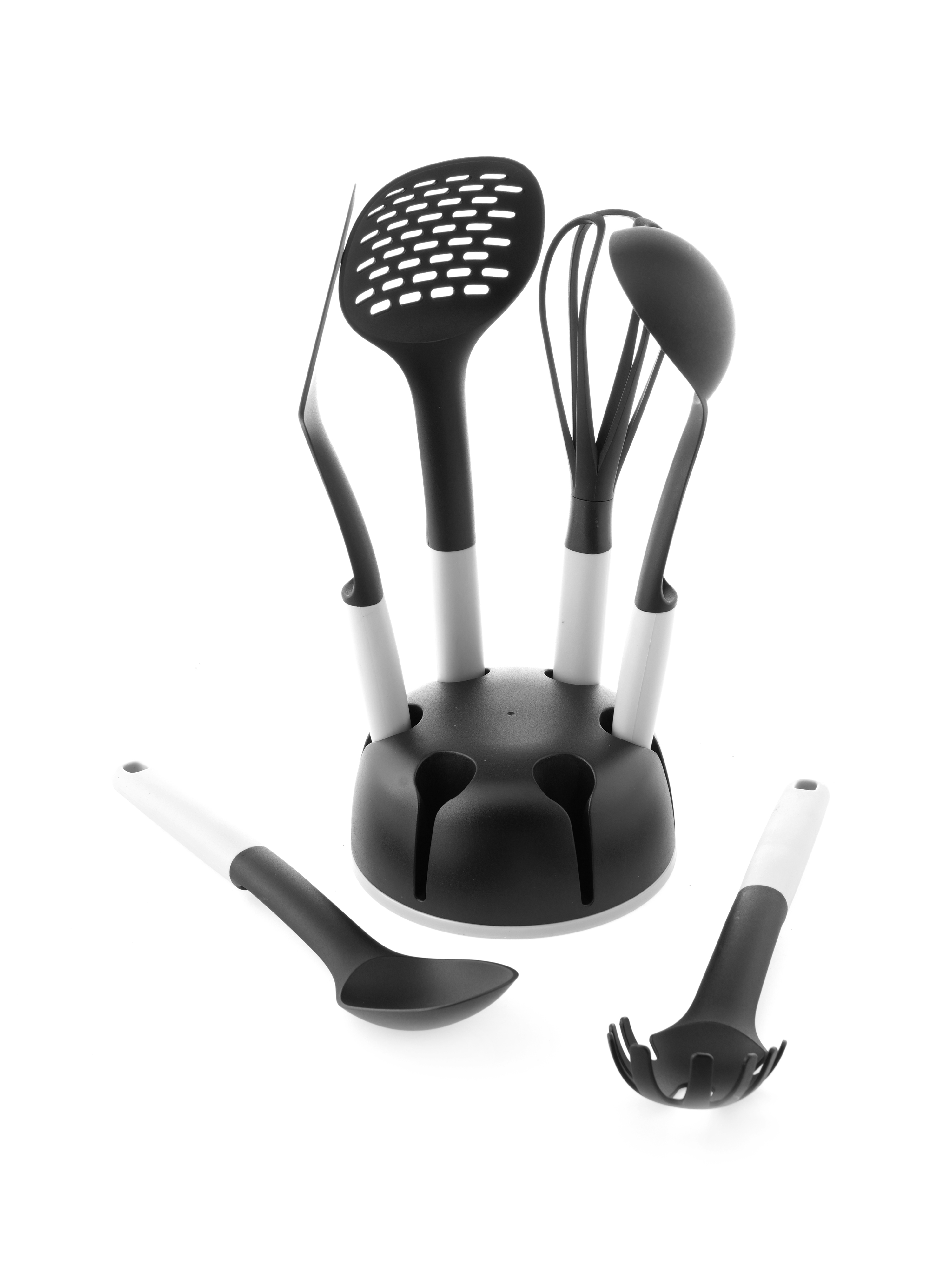 Bộ dụng cụ nhà bếp INOCHI Chất liệu: Nhựa PA cao cấp an toàn cho sức khỏe Kích thước: 145x145x394mm Đặc tính sản phẩm: - Bộ dụng cụ không làm trầy xước lớp chống dính