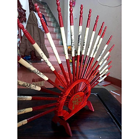 Bộ Đũa thờ dáng cắm đứng là một tác phẩm tinh tế được chế tác từ gỗ hương, với kệ và đũa đi kèm. Bộ đũa này bao gồm 10 đôi, mỗi đôi đều được làm tỉ mỉ và có độ hoàn thiện cao. Trên thân đũa, những họa tiết khắc rồng quấn quanh thân tạo nên một hình ảnh uy nghi và huyền bí.