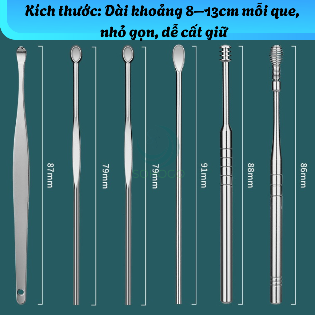 Giải pháp lấy ráy tai chuyên nghiệp, bộ dụng cụ 6 món inox cao cấp 5