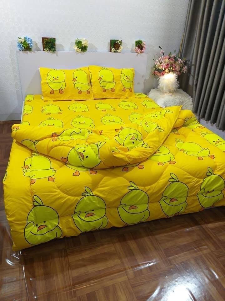 Bộ sản phẩm gồm 5 món: 01 ga bọc được nệm đến 20cm 02 vỏ gối nằm 50x70cm 01 vỏ gối ôm 35x100cm 01 vỏ chăn 200x220cm