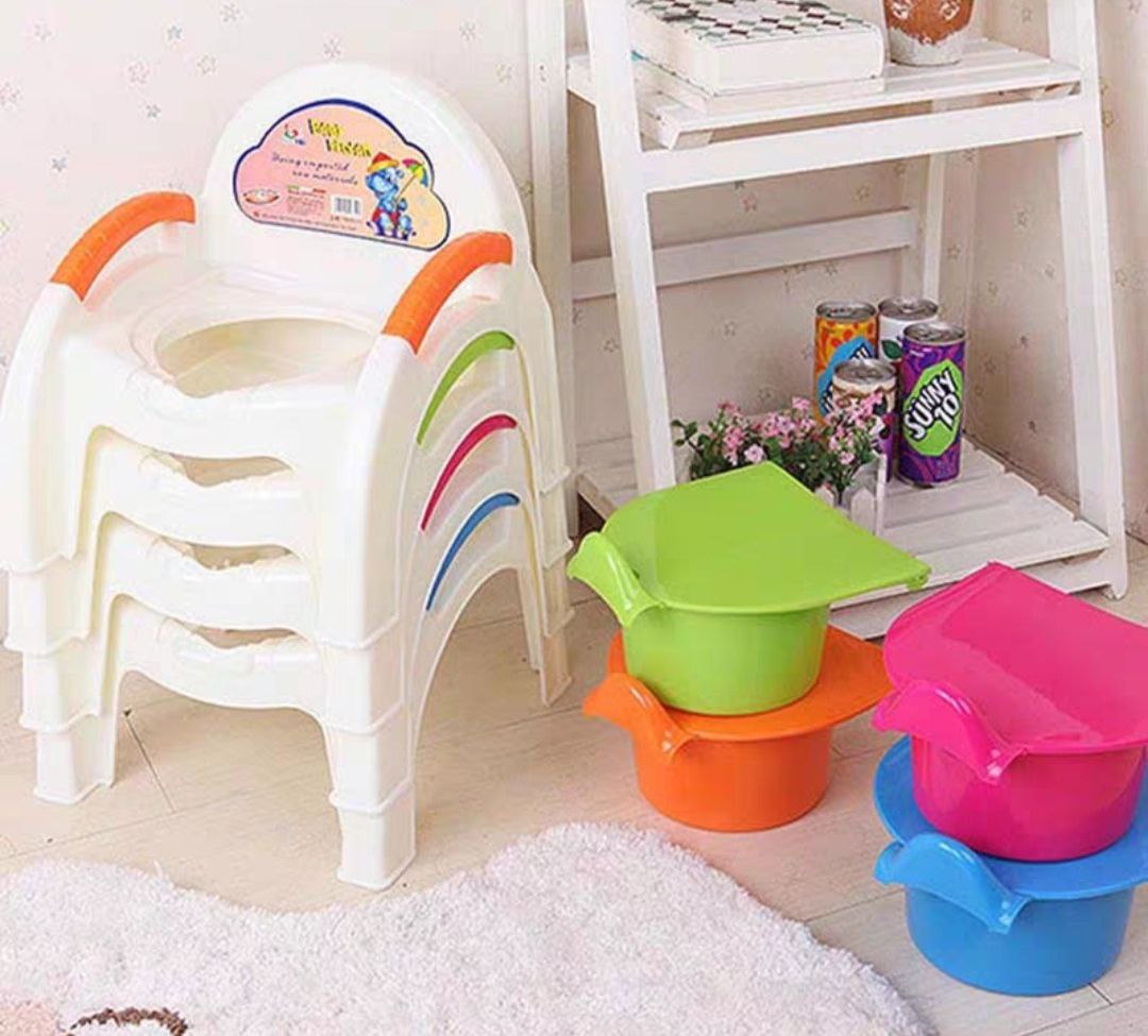 🪑 Thiết kế: 4 chân vững chắc, tựa lưng chống gù, tay vịn chắc chắn, giúp bé ngồi vệ sinh đúng tư thế và thoải mái hơn