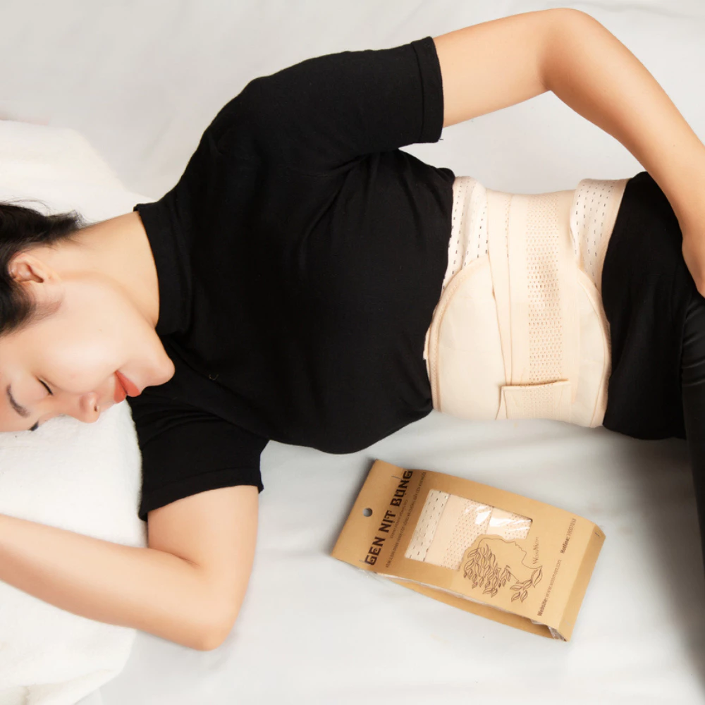 - Gen nịt bụng có đai Wonmom quấn chặt vào bụng để tạo thành áp lực vật lý khiến vòng bụng dần trở nên săn chắc như cũ.