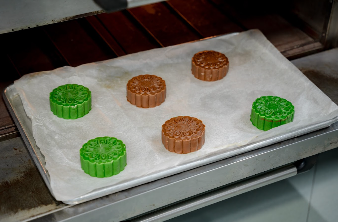 - BÁNH TRUNG THU NHÂN ĐẬU XANH - HẠT CHIA - LÁ DỨA 2 TRỨNG 220G Thành phần: Đậu xanh (60%), đường tinh luyện, đường Trehalose, bột mì, dầu đậu nành tinh luyện, nước cốt lá dứa (2%), hạt chia (2%), bột nếp, bột sữa, mạch nha, trứng muối, hương thực phẩm tổng hợp: lá dứa, chất bảo quản (INS 202).