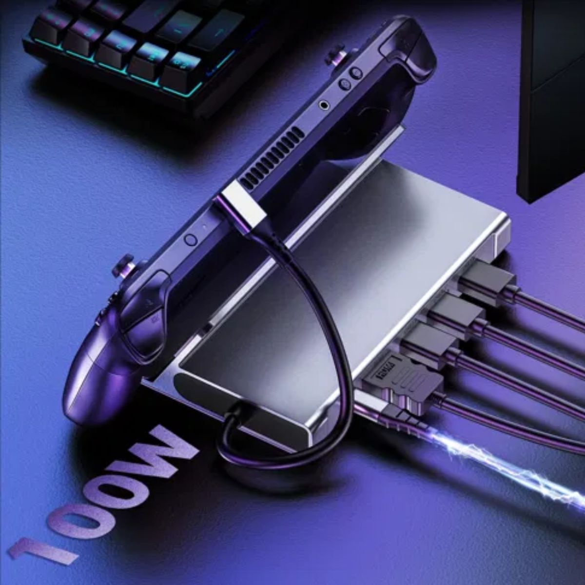 • Nhờ vào khả năng hỗ trợ nhiều thiết bị ngoại vi cùng lúc, giúp tăng cường năng suất làm việc. Sản phẩm này không chỉ phù hợp với những ai cần một công cụ kết nối đa dạng cho công việc văn phòng mà còn là một trợ thủ đắc lực cho các game thủ, nhà sáng tạo nội dung, hoặc người dùng đa phương tiện. Khi sử dụng với thiết bị chơi game như Steam Deck hoặc Rog Ally, hub không chỉ cung cấp khả năng kết nối với nhiều thiết bị mà còn cải thiện trải nghiệm chơi game với hình ảnh sống động, mượt mà hơn nhờ khả năng xuất ra màn hình lớn với độ phân giải 4K. Giúp bạn thưởng thức trò chơi với độ phân giải sắc nét và chi tiết, trong khi các cổng USB cho phép kết nối với chuột, bàn phím hoặc tay cầm điều khiển để có trải nghiệm chơi game tốt hơn. - Bộ hub Choetech HuB-M77 có kích thước cũng khá nhỏ gọn và nhẹ giúp bạn dễ dàng mang theo bên mình khi di chuyển hoặc cần làm việc từ nhiều địa điểm khác nhau. - Một trong những ưu điểm quan trọng của Choetech HuB-M77 chính là khả năng sạc nhanh mạnh mẽ với công suất lên đến 100W. Điều này không chỉ giúp bạn tiết kiệm thời gian sạc mà còn đảm bảo rằng thiết bị của bạn luôn được sạc đầy đủ và an toàn, bất kể bạn đang sử dụng để làm việc, giải trí, hay chơi game. - Nhìn chung Bộ Hub chuyển đổi 5in1 Choetech HUB-M77 Docking Station là sự lựa chọn hoàn hảo cho những ai tìm kiếm một sản phẩm vừa nhỏ gọn, vừa mạnh mẽ, đa năng và dễ sử dụng. Với khả năng kết nối đa dạng, hỗ trợ sạc nhanh, cùng thiết kế giá đỡ thông minh, sản phẩm này đáp ứng đầy đủ nhu cầu từ làm việc, học tập đến giải trí và chơi game. Cho dù bạn là một người dùng văn phòng, một game thủ, hay một nhà sáng tạo nội dung.  Choetech HuB-M77 sẽ là trợ thủ đắc lực giúp bạn tối ưu hóa hiệu quả sử dụng các thiết bị của mình.               Bộ Hub chuyển đổi Choetech HUB-M77 5in1 Docking Station (HDMI 4K60Hz + USB*3 + PD100W)- Hàng chính hãng
