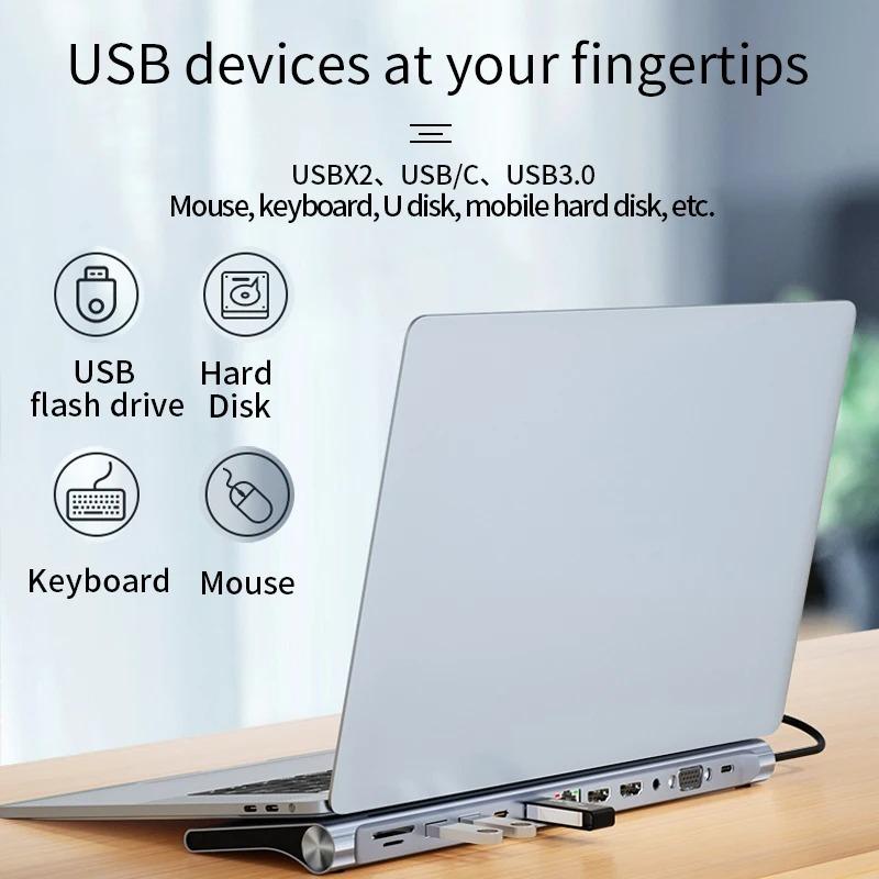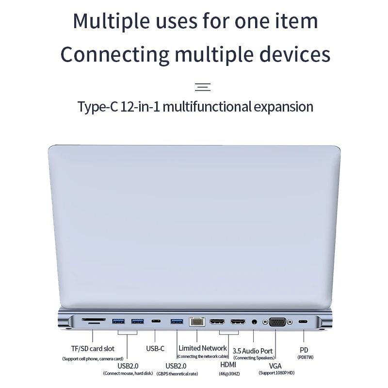 MÔ TẢ SẢN PHẨM Cổng loại C 11 trong 1: Tương thích HDMI + USB3.0 * 1 + USB2.0 * 3 + PD 87W + TF + SD + 100M RJ45 + AUX +