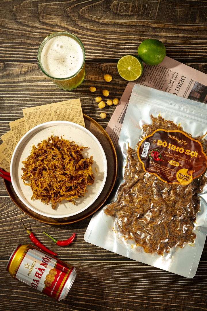 - Làm từ phần thịt bắp tươi của bò, đảm bảo vệ sinh An toàn thực phẩm