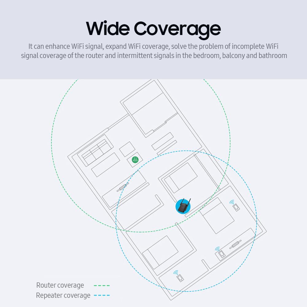 It can enhance WiFi signal, expand WiFi coverage, solve the problem of incomplete WiFi signal coverage of the router and intermittent signals in the bedroom, balcony and bathroom.