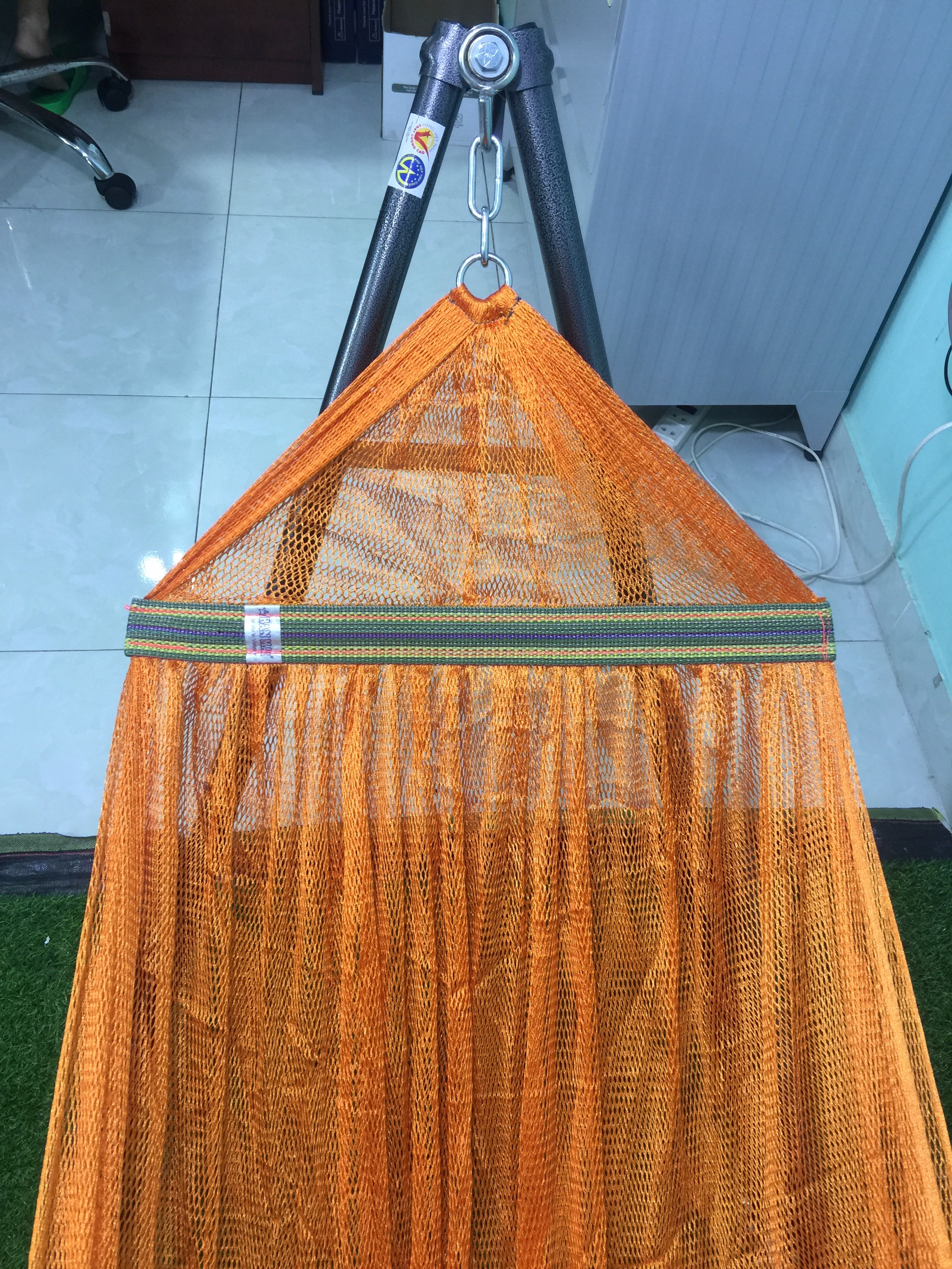 - Võng lưới: dệt từ sợi 100% polyester, đã căng kim ít dãn, dày, khổ rộng 1.2m, cán thép dài 50 cm (Màu ngẫu nhiên: ngọc, xám,cam...)
