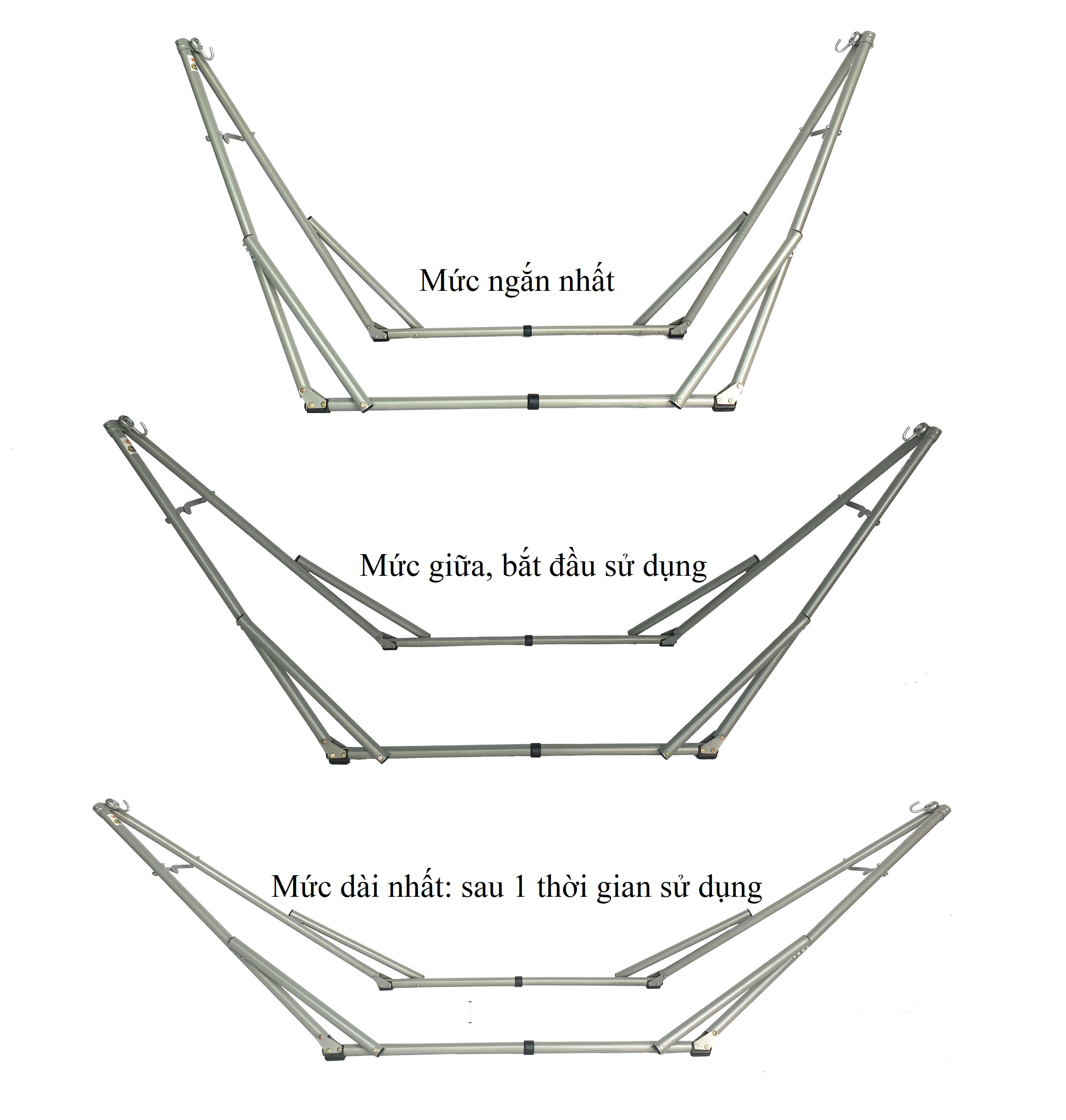 · Chốt gài có 3 rãnh là 3 mức điều chỉnh độ rộng của khung võng.
