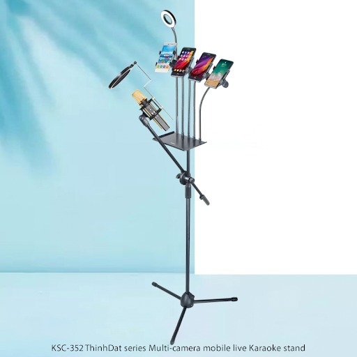 Bộ gồm 4 giá đỡ điện thoại, 1 giá đỡ micro, 1 lọc mic, 1 đèn led - Kẹp điện thoại 360 độ quay được MỌI GÓC giúp bạn chọn được GÓC QUAY ĐẸP, có thể livestream 4 điện thoại cùng 1 lúc - Đèn chiếu sáng với 3 chế độ làm sản phẩm ĐẸP LUNG LINH, còn bạn thì nổi bật như MINH TINH. Đèn có công suất sáng phù hợp trong khoảng cách gần (Đèn được thiết kế để bàn) đảm bảo giúp bạn lên hình ĐẸP NỔI BẬT, chất lượng hình ảnh SẮC NÉT. - Bộ phận chân đỡ vững chắc, có thể đặt trên mọi mặt phẳng mà điện thoại KHÔNG BỊ RUNG LẮC. - có giá để mic thu âm quá tiện cho các bạn thu âm tại nhà - Tích hợp nhiều chức năng như tăng giảm ánh sáng,thay đổi màu sắc ánh sáng (Có 3 chế độ Vàng, trắng, vàng pha trắng.) để việc livestream trở nên DỄ DÀNG và HIỆU QUẢ. - Đèn led mini - hỗ trợ ánh sáng - chụp hình - livestream - tiện lợi cho việc mang đi xa - Gọn gàng dễ dàng tháo lắp. Mô tả : Bộ livestream KAKU KSC-352 cao 190cm gồm 4 giá đỡ điện thoại, 1 giá đỡ micro, 1 lọc mic, 1 đèn 40 led 3 chế độ sáng.
