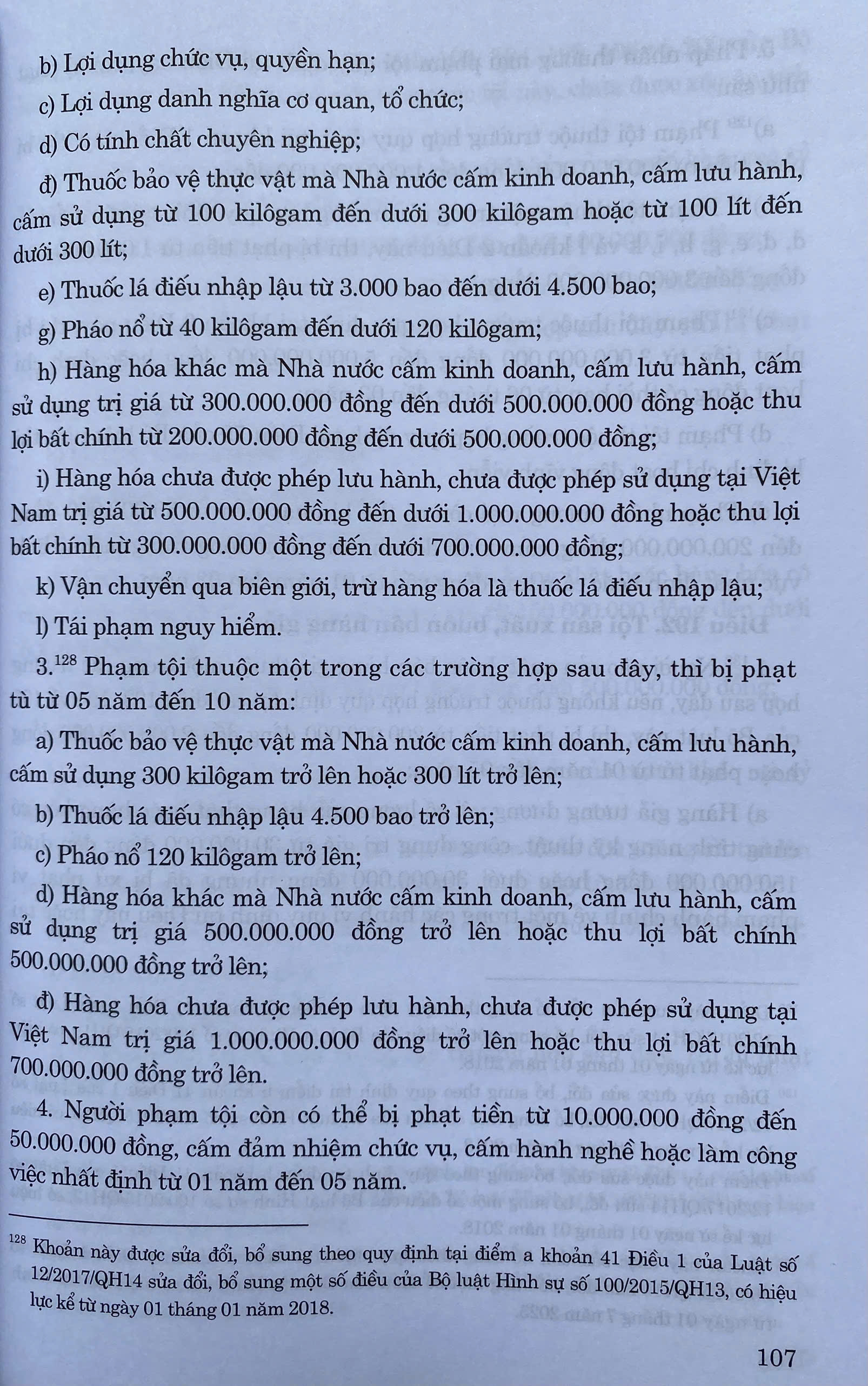 Bộ luật Hình sự số 100/2015/QH13 ngày 27/11/2015 của Quốc hội đã được sửa đổi, bổ sung bởi Luật số 12/2017/QH14 sửa đổi, bổ sung một số điều của Bộ luật Hình sự số 100/2015/QH13,